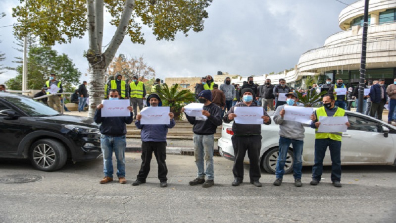 وقفة احتجاجية أمام بلدية رام الله احتجاجا على تأخر صرف الرواتب
