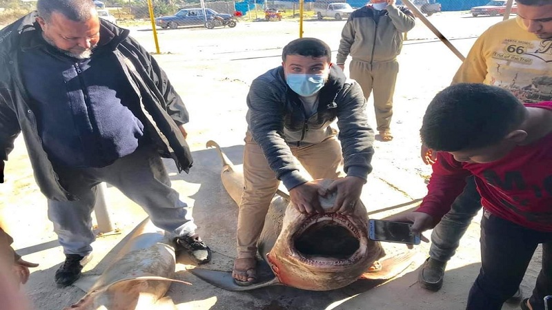 بالصور: اصطياد سمكة قرش تزن 200 كجم في غزة