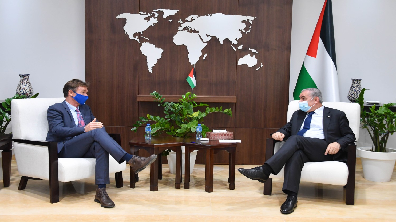 جاء ذلك خلال لقاء جمع اشتية مع ممثل الاتحاد الأوروبي لدى فلسطين سفين كون فون بورغسدورف، وبحثا آخر التطورات المتعلقة بعقد الانتخابات العامة في فلسطين، وسبل دعمها من قبل الاتحاد الأوروبي.
