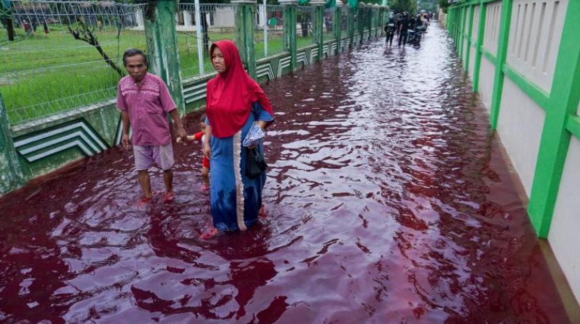 فيضانات المياه الحمراء تثير دهشة الإندونيسيين