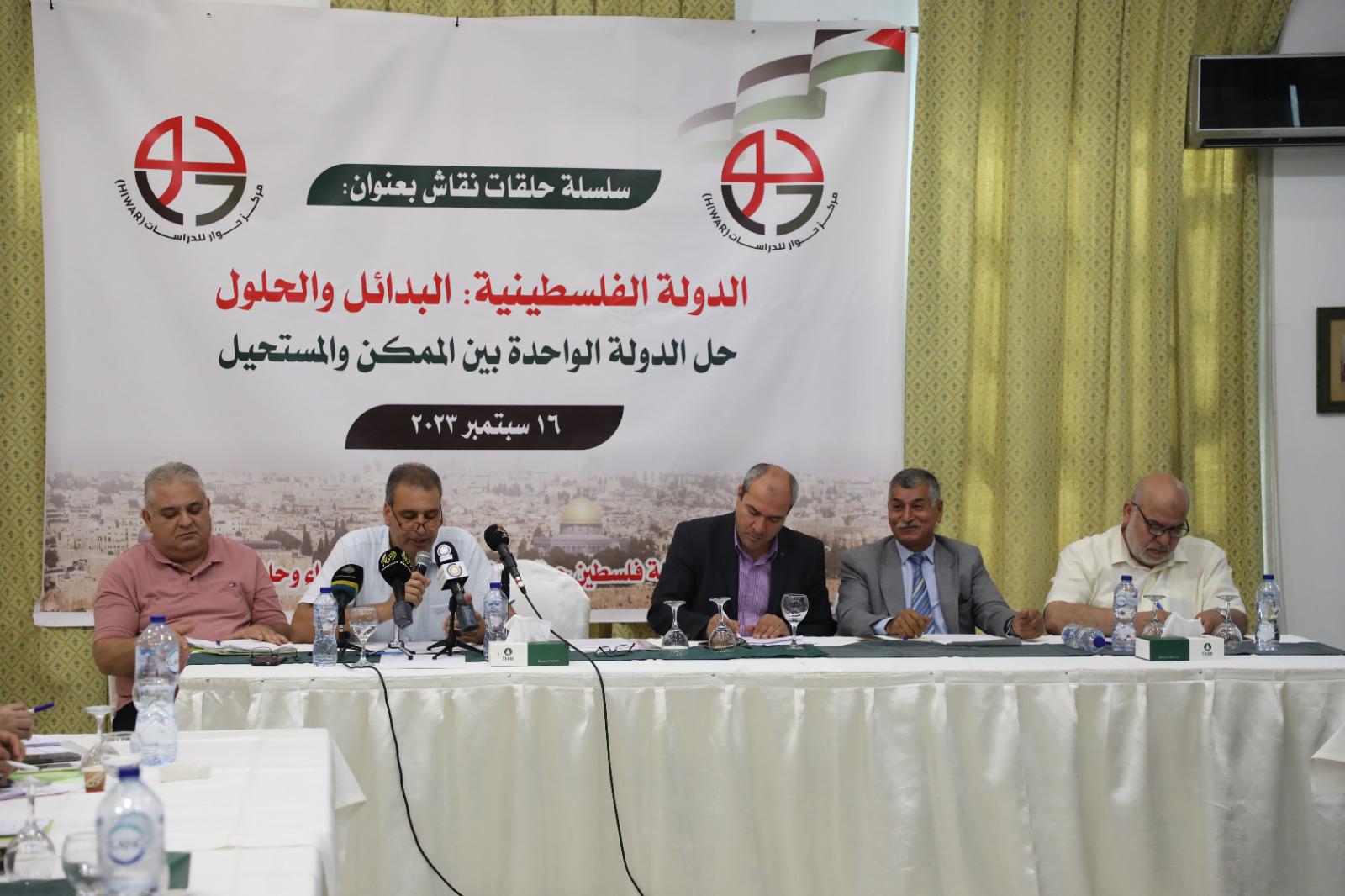 وعَرض محسن خلال الندوة، رؤية القيادي الفلسطيني محمد دحلان، رئيس تيار الإصلاح الديمقراطي في حركة فتح، لخيار الدولة الواحدة، والذي قَبل به بعد تحطيم الاحتلال كل أسس حل الدولتين، واعتبره بديلاً طبيعياً لوهم حل الدولتين، وحل حتميٍ في ظل التعنت الإسرائيلي والإجراءات التي تتخذها الحكومة التي لا تؤمن بحقوق الشعب الفلسطني.