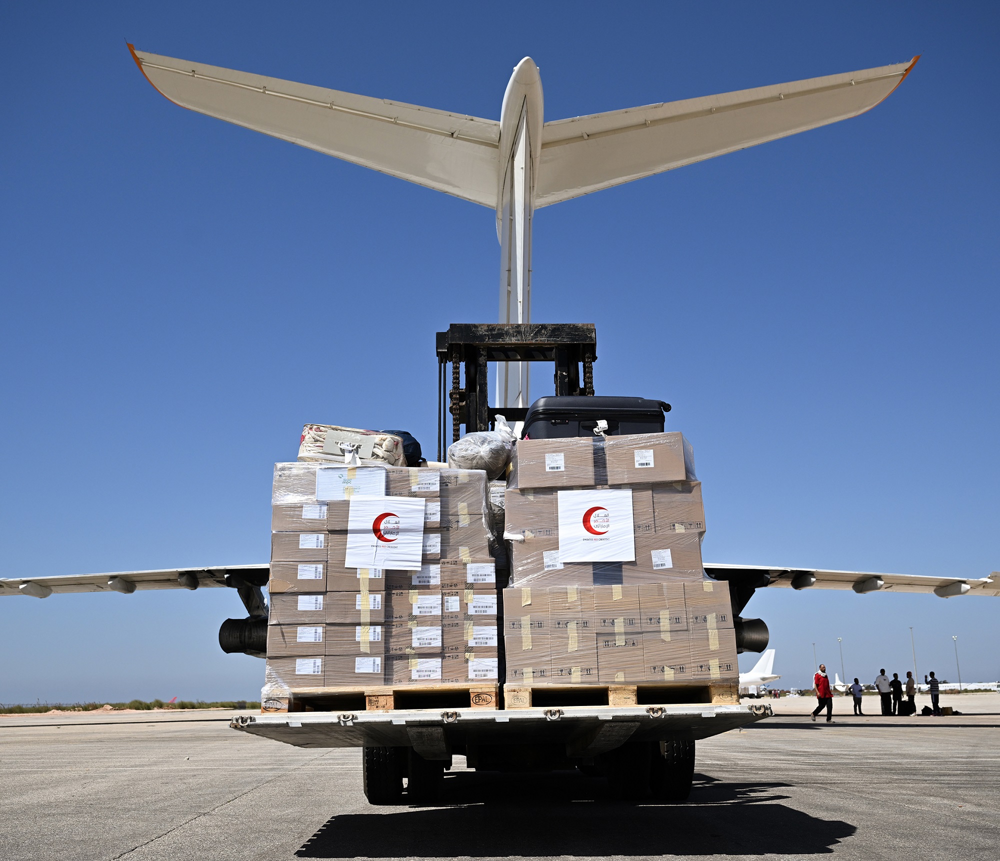 وتنفيذا لتوجيهات رئيس الدولة، أمر الشيخ حمدان بن زايد آل نهيان ممثل الحاكم في منطقة الظفرة، رئيس هيئة الهلال الأحمر الإماراتي، الهيئة بتنفيذ برنامج إغاثي على وجه السرعة شمل توفير وإرسال مستلزمات الإيواء والمواد الغذائية والصحية والاحتياجات الضرورية الأخرى، فضلا عن إرسال فرق البحث والإنقاذ إلى المناطق المنكوبة والتي تم تجهيزها بالمروحيات والطرادات والعربات المخصصة لمهام الإنقاذ والمولدات والأجهزة المتعددة الأخرى، فيما وصل يوم الخميس الماضي فريق تحديد هوية ضحايا الكوارث الإماراتي «DVI » إلى ليبيا الذي يعد الأول على مستوى العالم الذي يصل إلى درنة للقيام بهذه المهام النوعية.